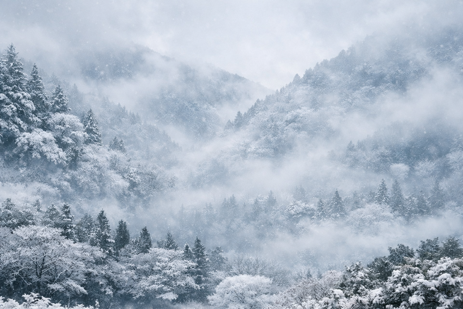 冬、白川の茶畑は雪に包まれ、深い静寂の中へと身をゆだねます。